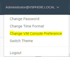 - Click this to display the drop down. Select 'Change VM Console Preference'